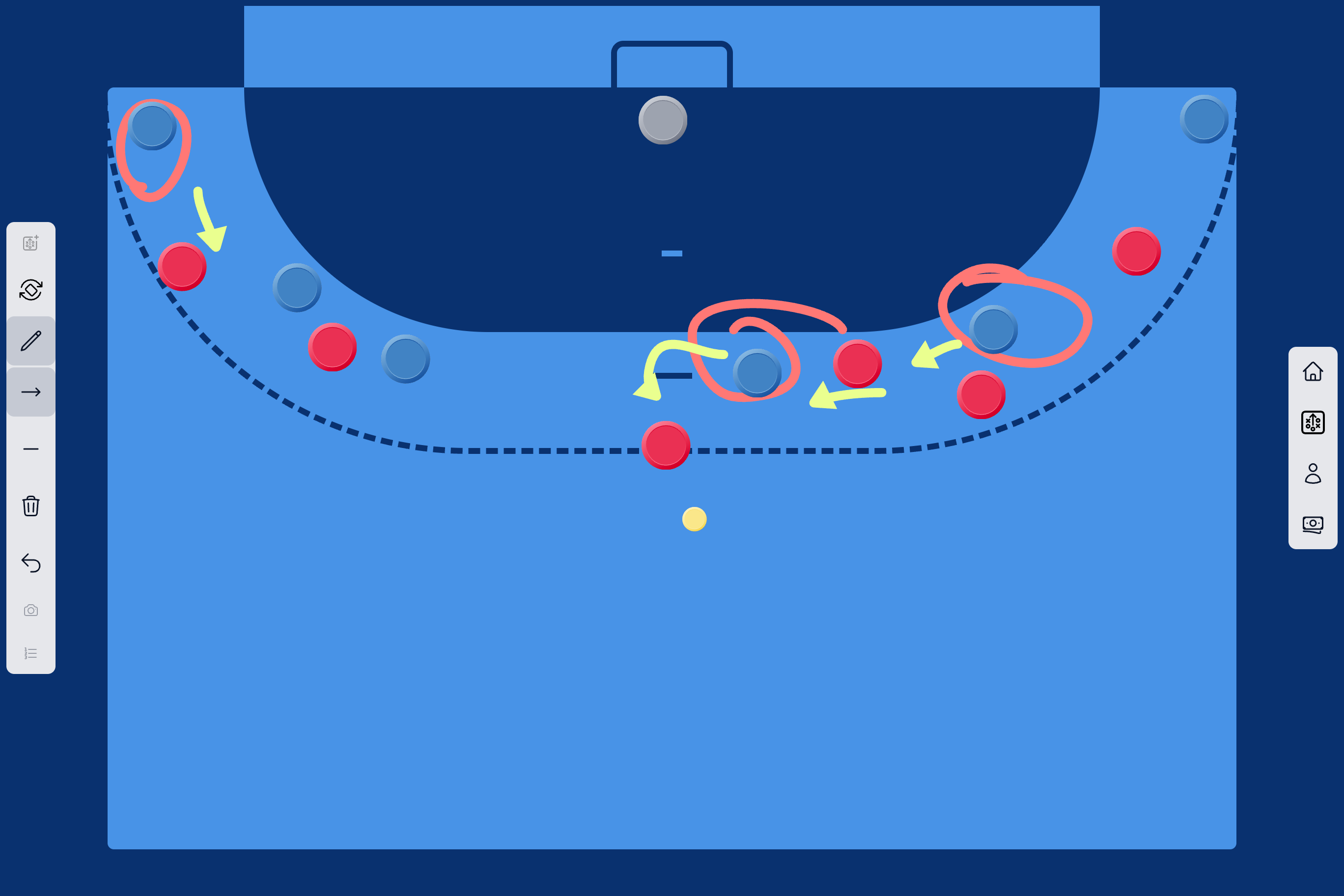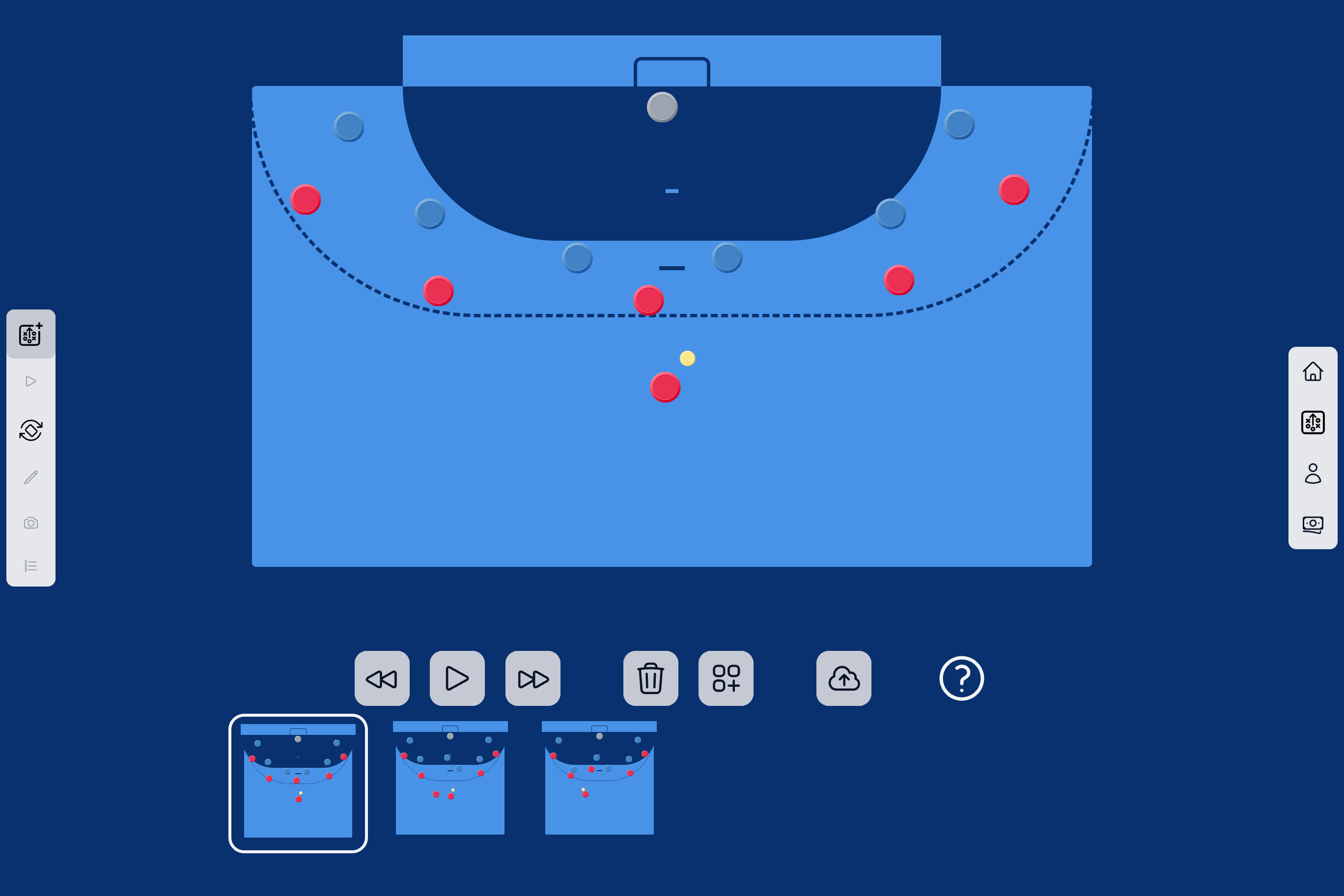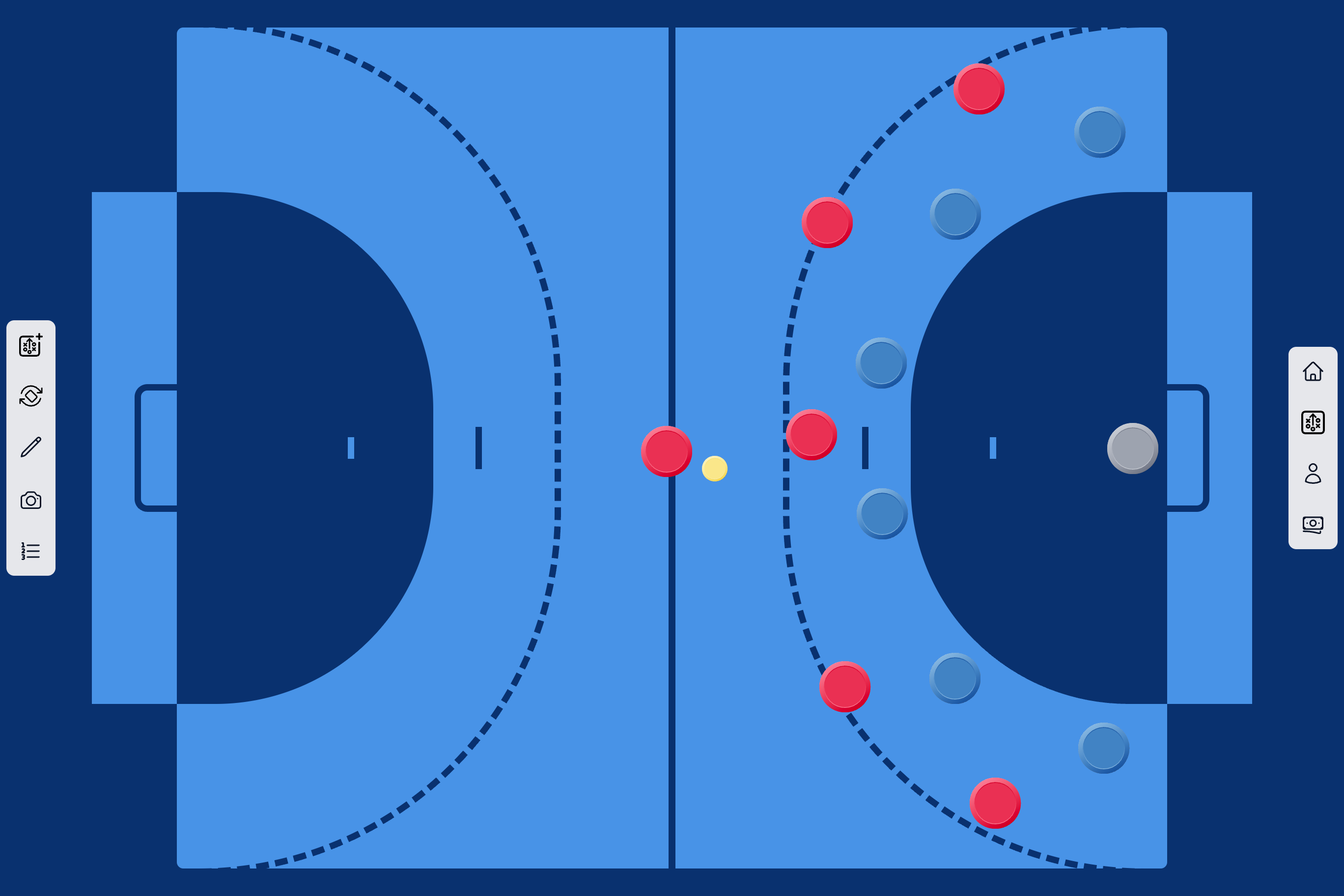 This is one of Handball PlayBook’s most powerful features. Build your attack step by step by drawing player movements – the app turns it into a visual playback you can save, replay, and rewind anytime. During a timeout, every second counts – show your team the right tactic clearly, quickly, and as many times as needed.